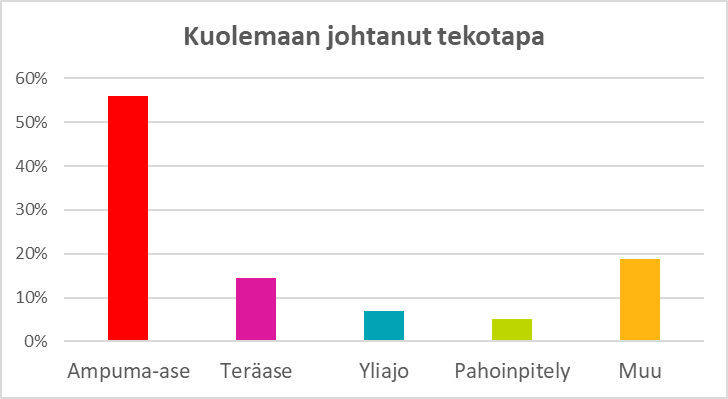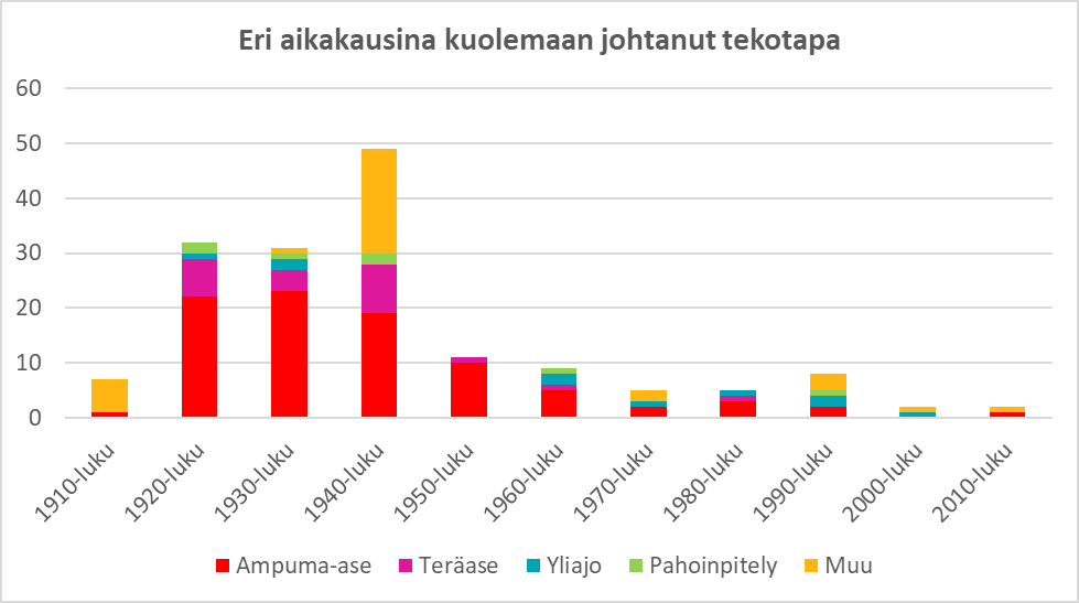 Diagrammi: Poliisin kuolemaan johtaneet tekotavat vuosikymmenittäin