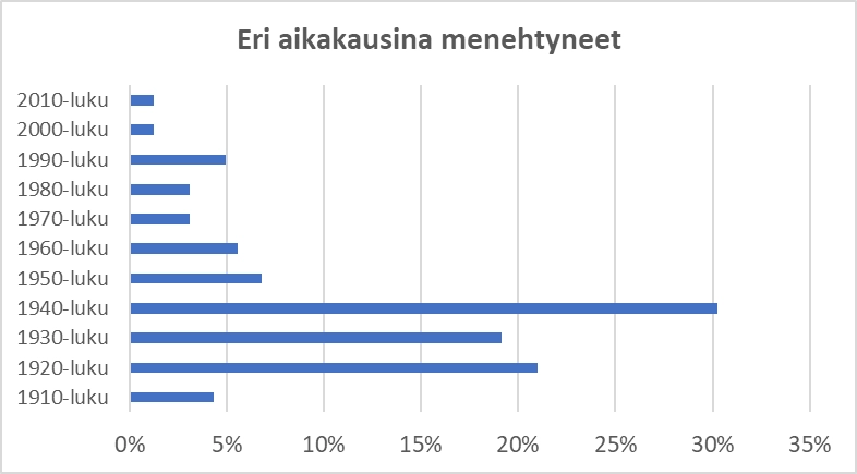 Diagrammi: Poliisisurmat vuosikymmenittäin